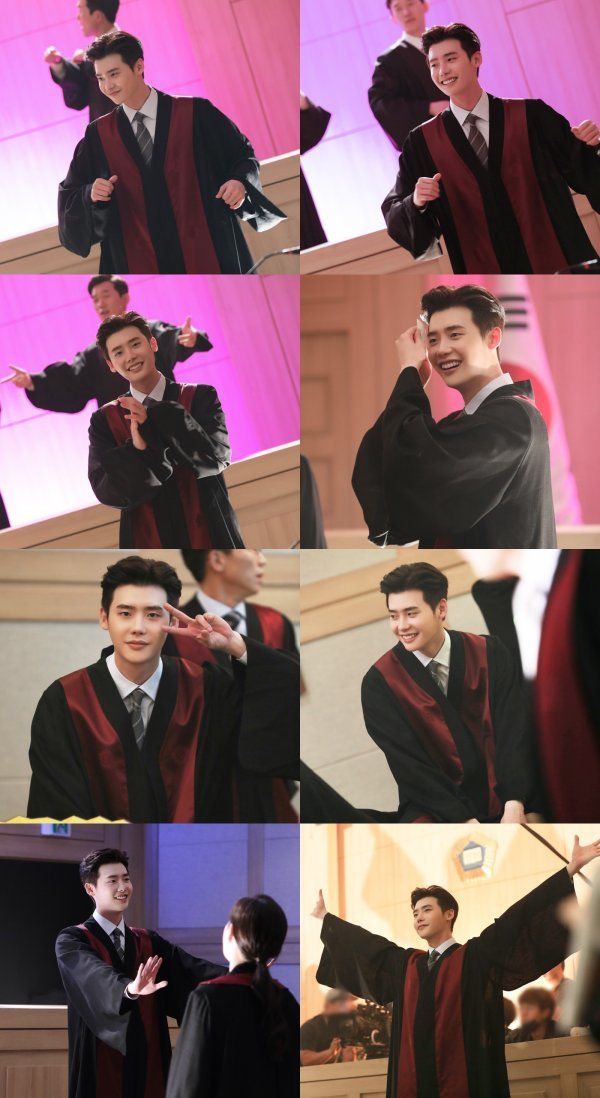 실제 촬영 현장 비하인드 사진 속 이종석은 법정에서 법복을 입은 채 손뼉을 치고 노래했다. 그는 쑥스러운 듯 얼굴을 붉히다가도, 흐르는 땀을 연신 닦아내며 열연을 펼쳤다.