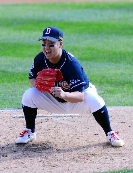 21일 창원 마산야구장에서 ‘2017 타이어뱅크 KBO리그’ 두산 베어스와 NC 다이노스의 플레이오프 4차전 경기가 열렸다. 1회말 무사 1, 3루에서 두산 선발 유희관이 볼로 판정되자 아쉬워하고 있다. 마산 | 김민성 기자 marineboy@donga.com