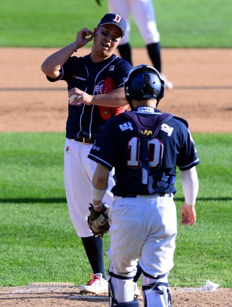 21일 창원 마산야구장에서 ‘2017 타이어뱅크 KBO리그’ 두산 베어스와 NC 다이노스의 플레이오프 4차전 경기가 열렸다. 5회말 2사 1루에서 NC 권희동에게 안타를 허용한 두산 선발 유희관이 아쉬워하고 있다. 마산 | 김민성 기자 marineboy@donga.com