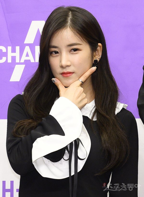 에이핑크 박초롱이 23일 서울 마포구 상암동 스탠포드 호텔에서 열린 채널A 웹드라마 ‘로맨스 특별볍’ 제작발표회에서 포즈를 취하고 있다.