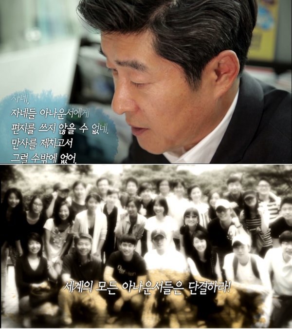 이 내용은 김상중의 응원 영상 촬영이 예정되어있던 지난 20일, 한국예술종합학교의 전규찬 교수가 ‘PD 저널’에 기고한 내용이다. 응원 영상 촬영을 위해 상암동으로 오고 있던 김상중은 이동하는 중에 이 글을 보고서 MBC 본부 관계자에 “내 마음과도 똑같은 좋은 글이다. 원래 구상했던 응원 영상에 더해서 추가로 이 글을 내가 읽고 싶다”라고 먼저 제안했다.