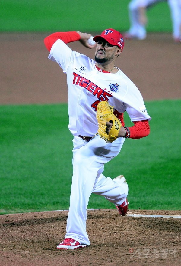 25일 광주-기아 챔피언스 필드에서 ‘2017 타이어뱅크 KBO리그’ 포스트시즌 한국시리즈 1차전 두산베어스와 KIA타이거즈 경기가 열렸다. 선발 투수로 등판한 KIA 헥터가 역투하고 있다.