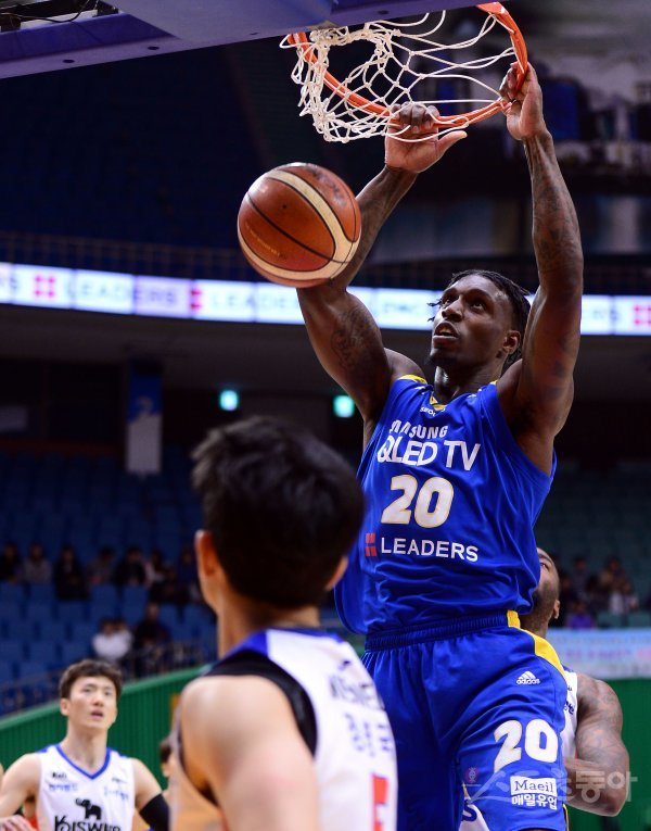 25일 서울 잠실실내체육관에서 열린 ‘2017-2018 정관장 프로농구’ 서울 삼성과 인천 전자랜드의 경기에서 삼성 라틀리프가 덩크슛을 성공시키고 있다.