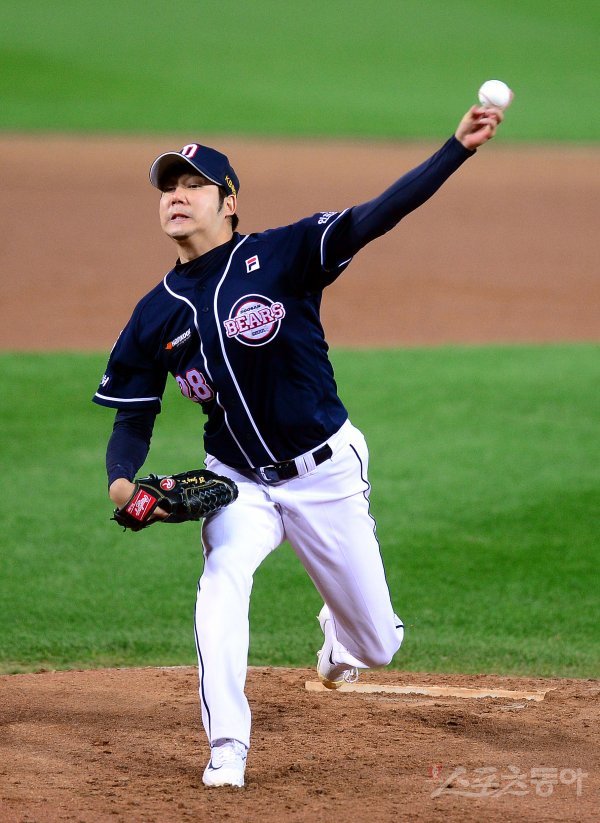 26일 광주-기아 챔피언스 필드에서 ‘2017 타이어뱅크 KBO리그’ 포스트시즌 한국시리즈 2차전 두산베어스와 KIA타이거즈 경기가 열렸다. 선발 투수로 등판한 두산 장원준이 역투하고 있다.
