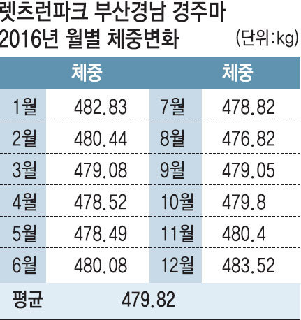 마체중 12월 최고, 8월 최저 ‘6.7kg 차’