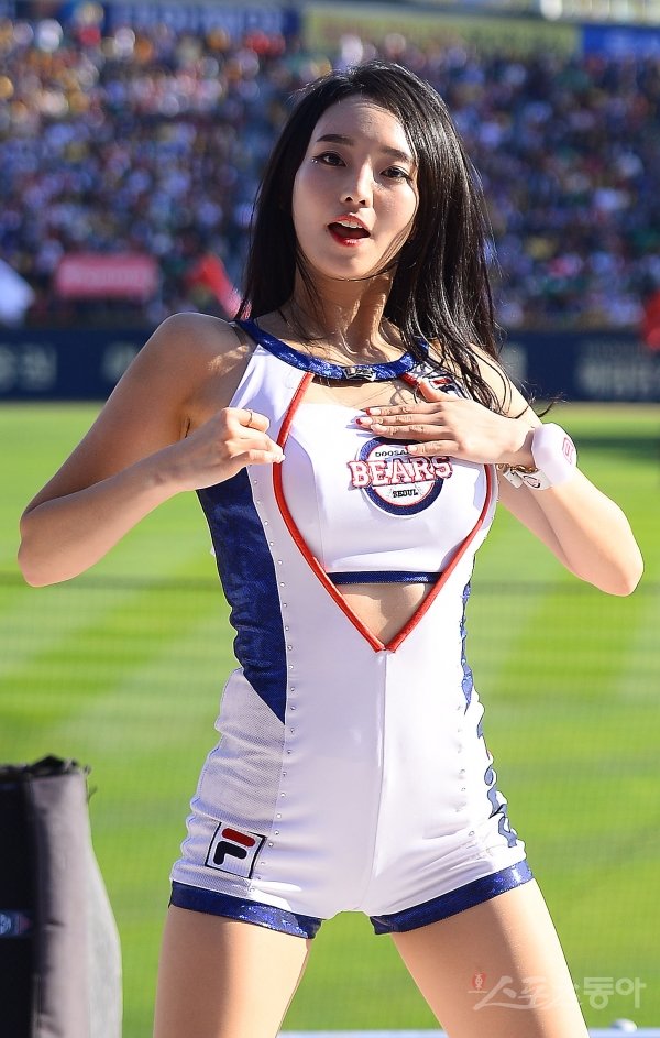 28일 서울 잠실야구장에서 ‘2017 타이어뱅크 KBO리그’ 포스트시즌 한국시리즈 3차전 KIA타이거즈와 두산베어스의 경기가 열렸다. 두산 치어리더가 열정적인 공연를 펼치고 있다.
