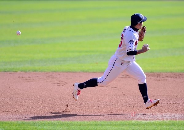 29일 서울 잠실야구장에서 ‘2017 타이어뱅크 KBO리그’ 포스트시즌 한국시리즈 4차전 KIA타이거즈와 두산베어스 경기가 열렸다. 1회초 2사 1루 두산 최주환이 KIA 안치홍의 타구를 실책하고 있다.