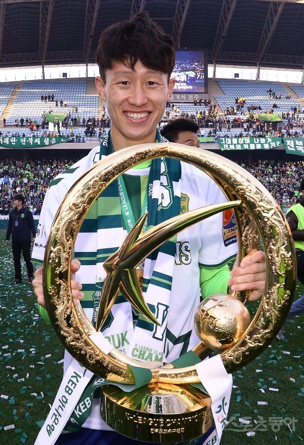 29일 전주월드컵경기장에서 열린 ‘KEB하나은행 2017 K리그 클래식’ 36라운드 전북현대와 제주UTD의 경기에서 전북현대가 3-0 승리를 거두며 남은 경기와 상관없이 우승을 확정지으며 통산 5회 우승을 달성했다. 경기 후 전북현대 이재성이 우승 트로피를 들고 포즈를 취하고 있다.