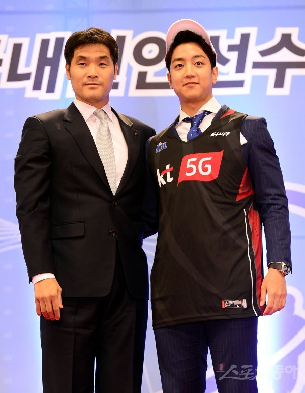 30일 서울 잠실학생체육관에서 ‘2017 KBL 국내신인선수 드래프트’가 열렸다. KT 조동현 감독이 1순위에 선정된 허훈과 기념촬영을 하고 있다.
