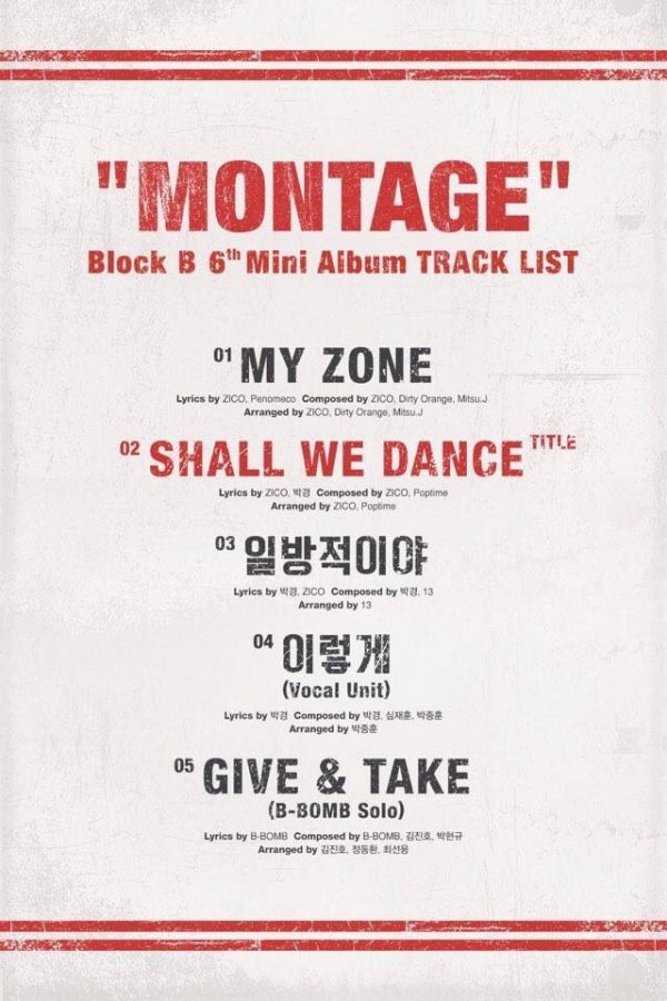 그룹 블락비가 31일 0시 공식 SNS를 통해 여섯 번째 미니앨범 ‘몽타주(MONTAGE)’ 트랙리스트를 공개했다.