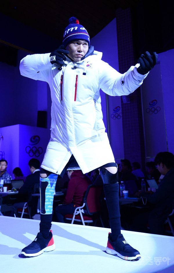 동계패럴림픽 노르딕스키 신의현이 선수단복 시연회를 하고 있다.