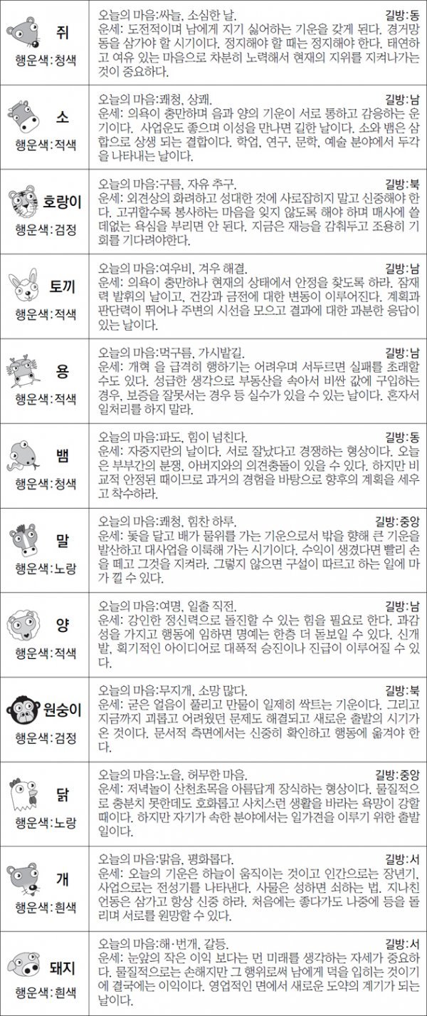 ▲ 오늘의 운세 도표. 스포츠동아