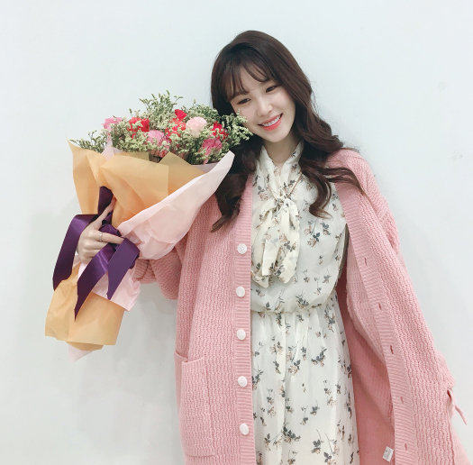 공개된 사진 속 전효성은 꽃다발을 들고 함박 미소를 지어보였다. 꽃무늬 원피스에 핑크 가디건을 매치해 사랑스러움을 더욱 뽐냈다.
