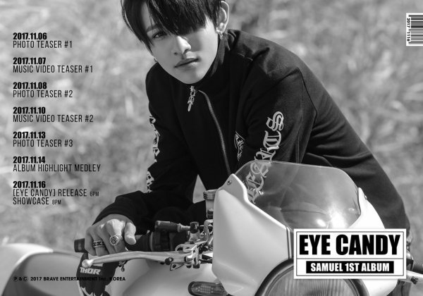 사무엘의 첫 번째 정규앨범 ‘아이 캔디(EYE CANDY)’는 오는 11월 16일 각종 온라인 음원사이트를 통해 발매되며, 이날 서울 광진구 예스24 라이브홀에서 컴백 쇼케이스를 개최할 예정이다.