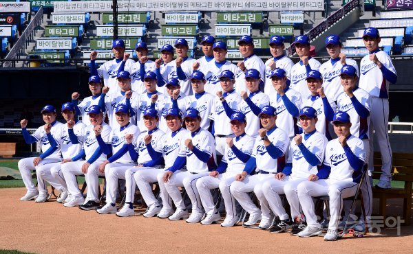 한국 야구국가대표팀이 오는 16일부터 4일간 일본 도쿄돔에서 열리는 ‘아시아 프로야구 챔피언십 2017’ 대회를 앞두고 5일 서울 잠실야구장에서 첫 소집 훈련을 가졌다. 훈련에 앞서 선동열 감독 및 선수, 코치들이 기념촬영을 하고 있다.