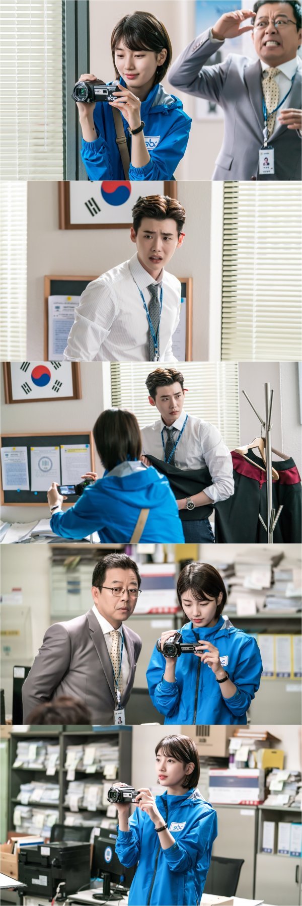 공개된 사진 속 홍주는 흥미로운 현장을 발견했다는 듯 미소를 지으며 캠코더로 재찬의 사무실을 찍고 있다. 부장검사 대영은 재찬에게 온몸으로 신호를 보내고 있고, 재찬은 그런 홍주를 발견하고 망연자실한 표정을 짓고 있어 웃음을 자아낸다.