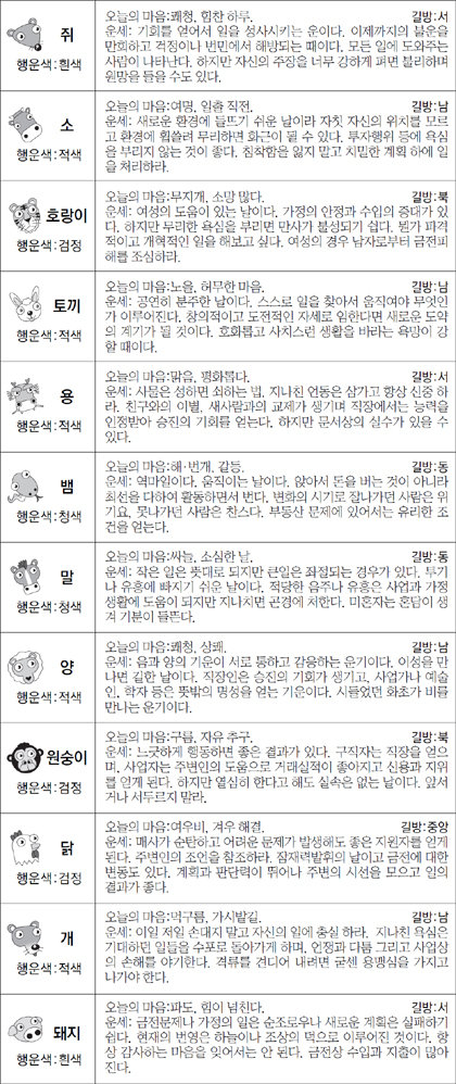 ▲ 오늘의 운세 도표. 스포츠동아