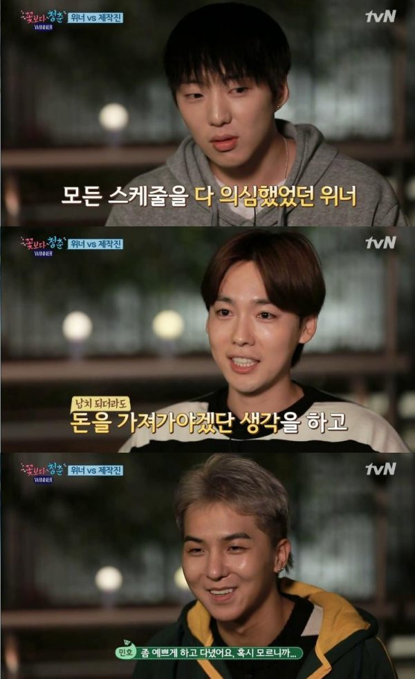 위너는 "모든 스케줄마다 매니저를 의심했다" "땀 범벅이 된채 공항에 갈 것이라는 생각을 했었다"고 \'꽃청춘\'에 대한 기대감을 표현했다.