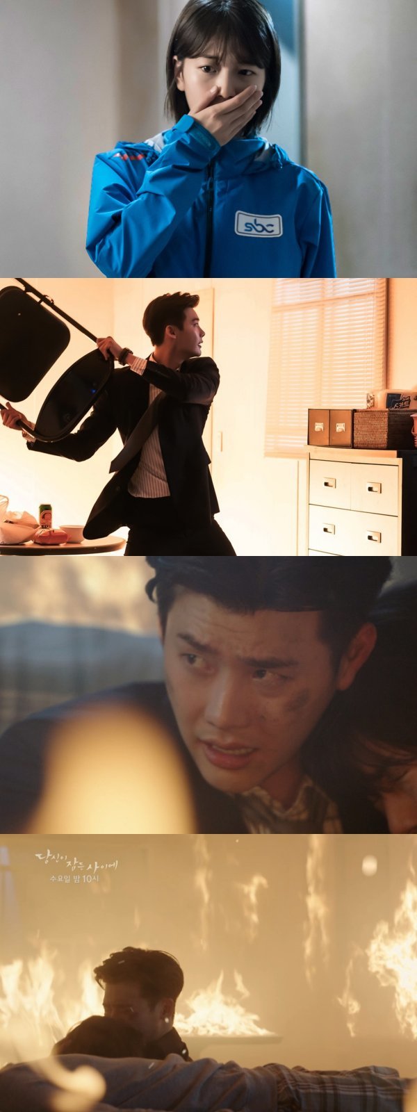 SBS 수목 드라마 스페셜 ‘당신이 잠든 사이에’(극본 박혜련 / 연출 오충환 / 제작 iHQ 정훈탁 황기용) 측은 8일 25-26회 방송을 앞두고 정재찬(이종석 분)과 남홍주(배수지 분)가 불길 속에서 위기에 처한 모습이 담긴 스틸을 공개했다.
