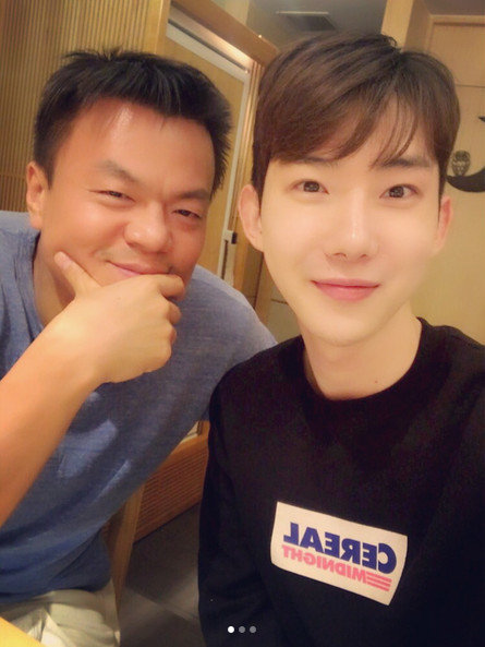 조권은 8일 자신의 인스타그램에 "JYP X JK dinner time 2001년 오디션에서 저를 발굴하신 분.감사합니다." 라는 글과 함께 사진 한 장을 게재했다. 사진 속에는 박진영과 조권이 환한 미소를 짓고 있는 모습이 담겨있어 눈길을 끈다.