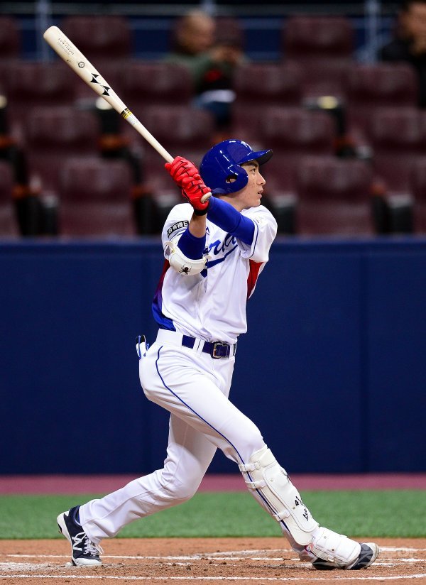 1회말 2사 1루 대표팀 이정후가 좌전 안타를 치고 있다.