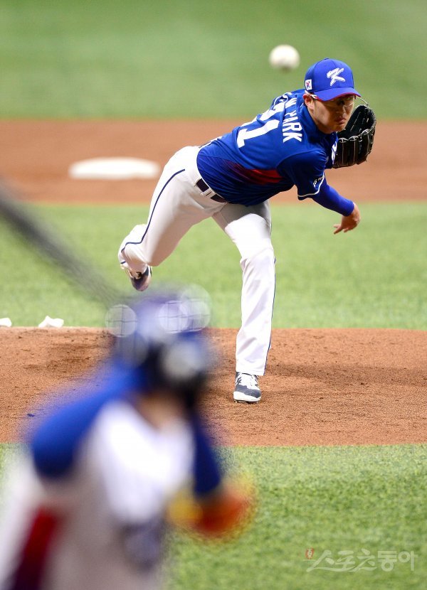 넥센팀 선발 투수로 등판한 야구대표 박세웅이 역투하고 있다.