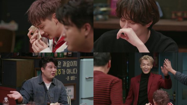 특히 이날 방송에서는 촬영장을 눈물바다로 만든 사연이 공개된다. 최근 다리 통증으로 위축되었다는 김희철에게 은혁은 "형을 더 배려했어야 했는데 많이 미안했다"고 말하고, 신동 역시 "김희철이 예능에 나가 활약하지 않았다면 슈퍼주니어가 예능으로 잘 풀리지 않았을 것"이라며 고마움을 표현하는 것. 이에 김희철은 "예능에서 우는 거 싫어하는데"라 말하면서 눈물을 보여 출연진 모두의 마음을 먹먹하게 만들었다는 후문이다.