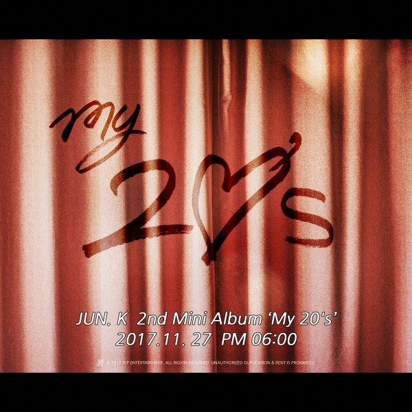 JYP엔터테인먼트는 14일 0시 JYP의 각종 SNS를 통해 준케이의 컴백 티저 이미지를 선보이며 이같은 사실을 알렸다. 티저 이미지는 \'20대\'를 \'2♡\'S\'로 개성 넘치게 표현하고 새 앨범과 릴리즈 정보를 마치 영화 자막처럼 \'JUN. K 2nd Mini Album \'My 20\'s 2017.11.27 PM 06:00\'로 표기해 눈길을 모은다.