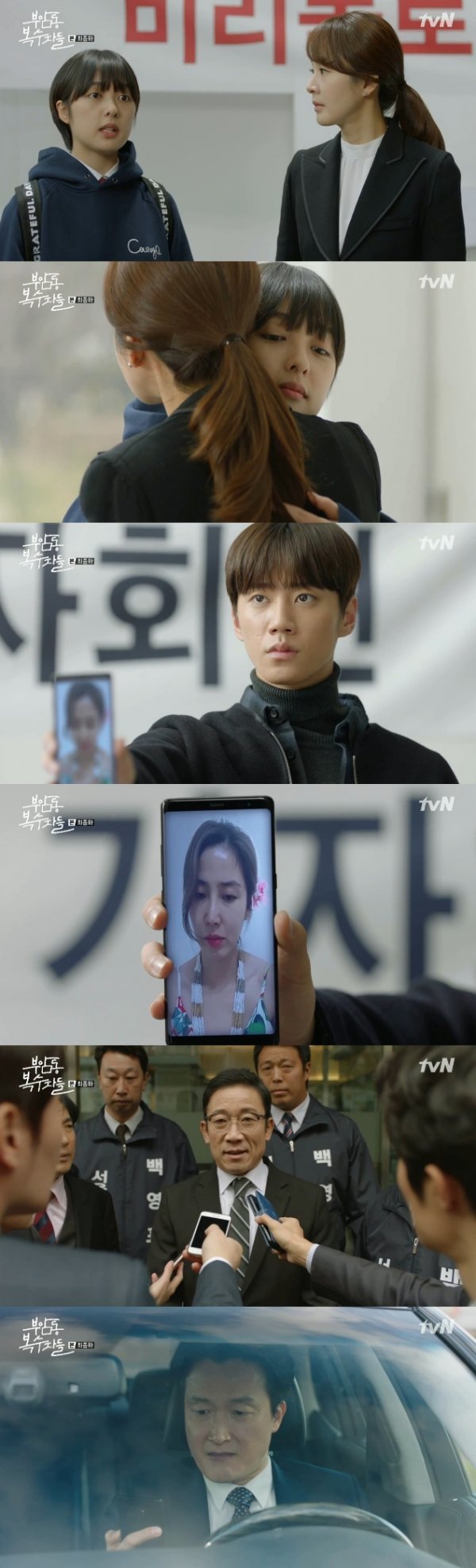 16일 방송된 tvN 수목드라마 ‘부암동 복수자들’(극본 김이지 황다은, 연출 김상호 이상엽) 12회(최종회)에서는 백영표(정석용)와 이병수(최병모)의 비리를 폭로한 김정혜(이요원), 홍도희(라미란), 이미숙(명세빈), 이수겸(이준영)의 모습이 그려졌다.