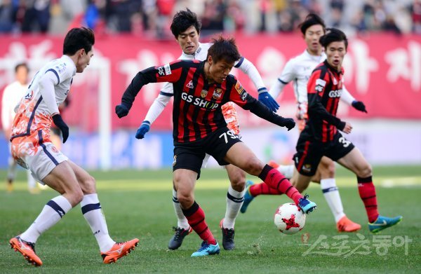 19일 서울 월드컵경기장에서 열린 ‘KEB하나은행 K리그 클래식 2017’ FC 서울과 제주 유나이티드의 경기에서 서울 이명주가 제주 수비수를 제치며 돌파하고 있다.