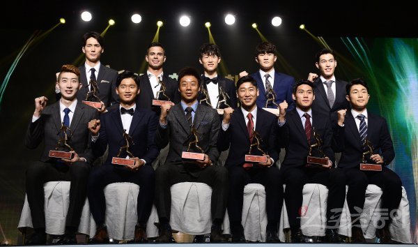 20일 서울 서대문구 홍은동에 위치한 그랜드 힐튼 서울에서 ‘KEB하나은행 K리그 어워즈 2017’이 열렸다. K리그 베스트11이 시상식이 끝난 후 포토타임을 갖고 있다.