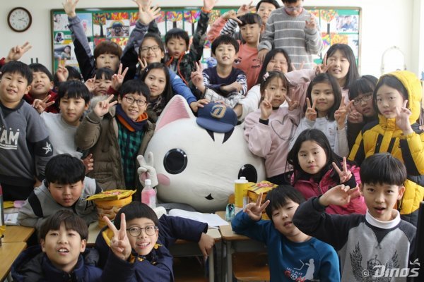 고양 다이노스는 23일 성라초등학교 4학년 2반과 고양경찰서 경제수사3팀을 깜짝 방문해 특별한 추억을 선물했다. 2015년부터 고양 페이스북을 통해 사연을 신청 받아 진행한 ‘달려갈고양’ 이벤트를 통해서다.