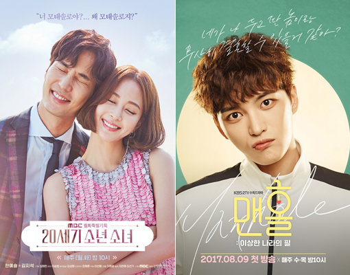 MBC 드라마 ‘20세기 소년소녀’(왼쪽)-KBS2 드라마 ‘맨홀 - 이상한 나라의 필’. 사진제공|화이브라더스코리아·셀트리온엔터테인먼트