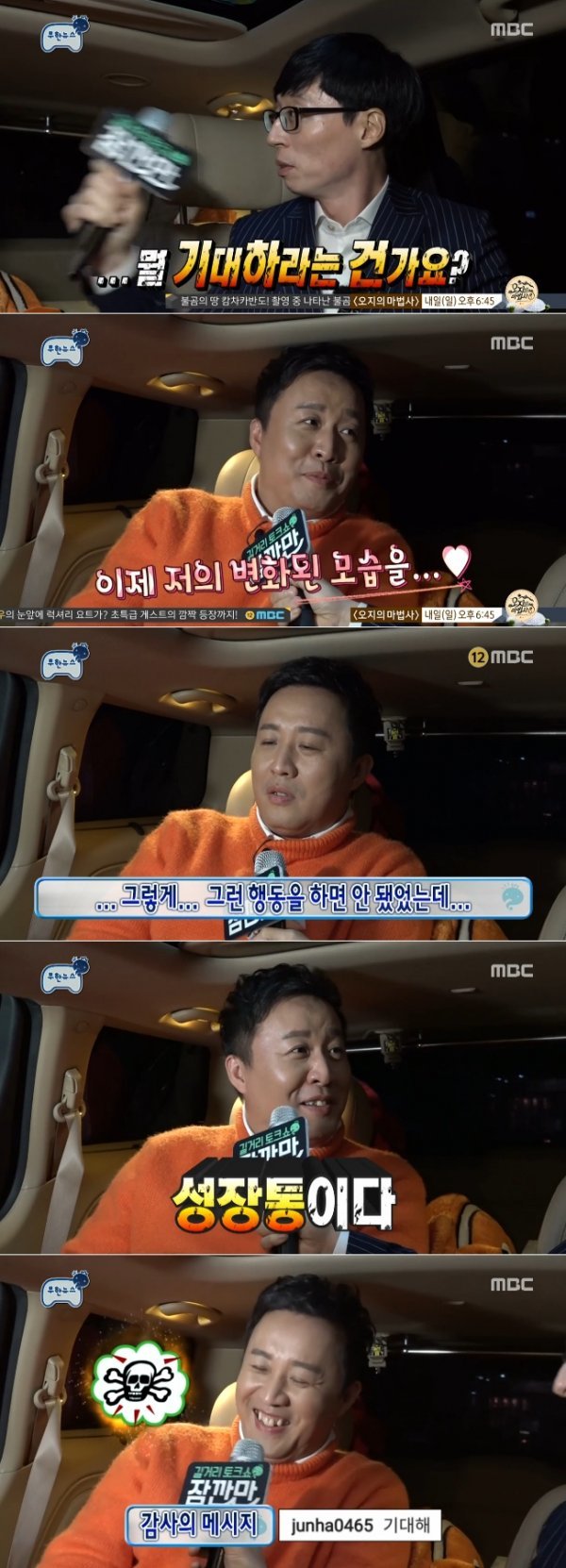 이날 유재석은 박명수에 이어 정준하를 찾아갔다. 첫 질문부터 세고 직접적이었다. 유재석은 “대체 무엇을 ‘기대하라’는 것인가”라고 물었다. 이는 정준하가 누리꾼과 설전을 벌이던 당시 SNS에 남긴 ‘기대하라’를 언급한 것. 정준하는 “이제 나의 변화된 모습을 기대해달라는 뜻”이라고 고백했다. 그는 “그런 행동을 하면 안 되는데 감정 섞인 대응으로 설전을 벌였다. 많이 후회하고 있다”면서 “후회되는 일을 잘 수습하고 현명하게 대처해야 하는데 (그러지 못했다)”고 털어놨다.