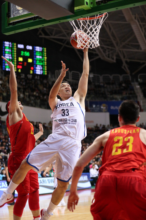 한국남자농구대표팀이 중국의 벽에 막혔다.