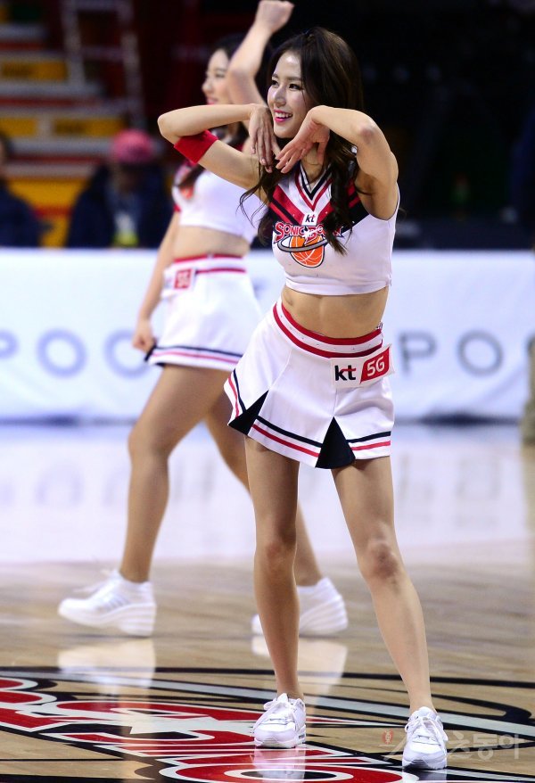 28일 부산 사직실내체육관에서 열린 ‘2017-2018 정관장 프로농구’ 부산 KT와 전주 KCC의 경기에서 KT 치어리더 박기량이 공연을 선보이고 있다.