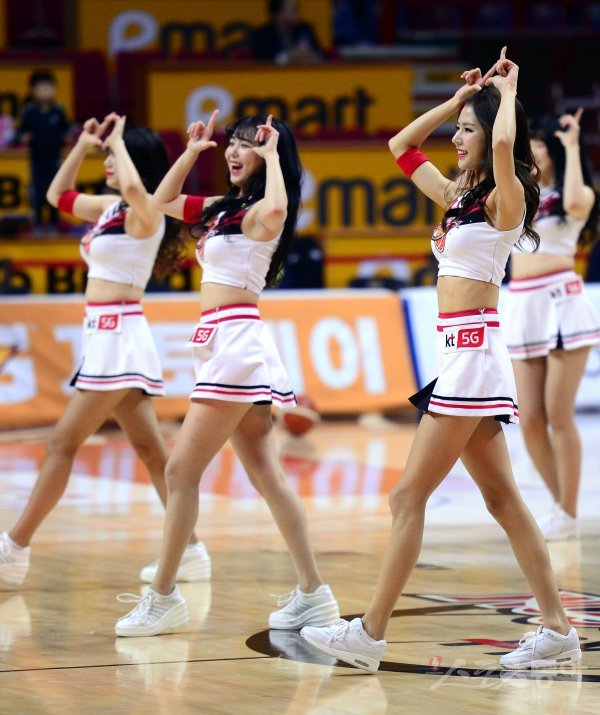 28일 부산 사직실내체육관에서 열린 ‘2017-2018 정관장 프로농구’ 부산 KT와 전주 KCC의 경기에서 KT 치어리더 박기량이 공연을 선보이고 있다.