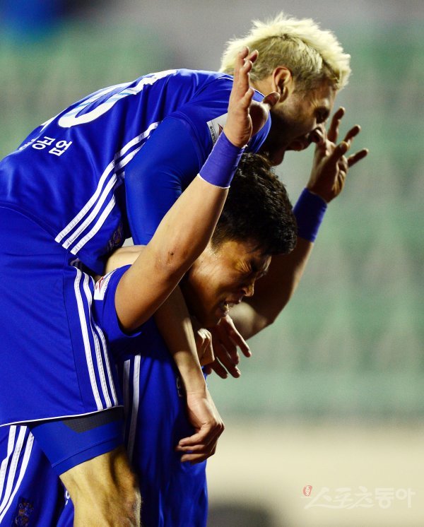 29일 부산 구덕운동장에서 ‘2017 KEB 하나은행 FA CUP’ 부산 아이파크와 울산 현대의 결승 1차전 경기가 열렸다. 울산 이종호가 골을 넣은 뒤 호랑이 세리머니를 펼치고 있다.