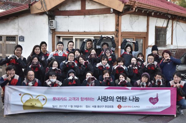 롯데카드 임직원으로 구성된 ‘샤롯데 봉사단’과 롯데카드 회원 등 30여명은 연탄사용 가구를 방문해 롯데카드가 기부한 연탄 1만장 중 1500장을 직접 전달했다. 나머지 8500장은 사단법인 ‘따뜻한 한반도 사랑의 연탄 나눔 운동’을 통해 전달할 예정이다. 롯데카드 측은 “창립기념일(12월3일)에 맞춰 임직원과 고객이 함께하는 봉사활동을 진행했다”고 했다.