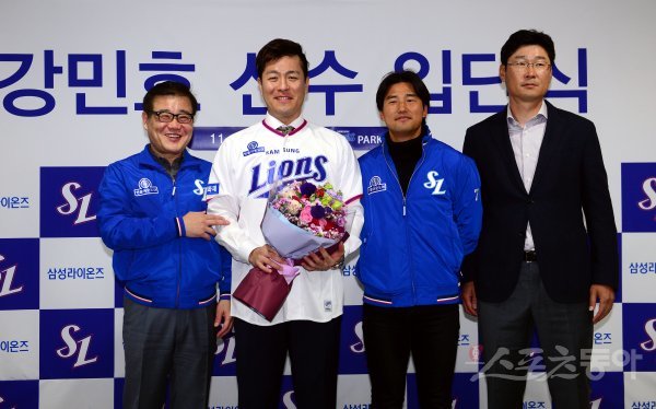 30일 대구 라이온즈파크에서 4년 총액 80억에 FA 계약한 삼성 강민호의 입단식이 열렸다.