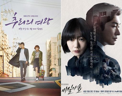 이성민 작가의 드라마 ‘추리의 여왕’(왼쪽)-이수연 작가의 드라마 ‘비밀의 숲’. 사진제공|KBS·CJ E&M