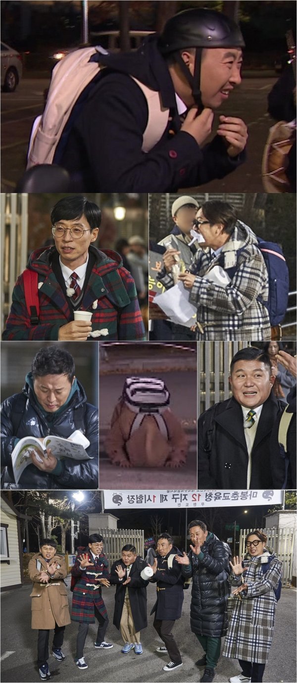 또한 트레이닝복을 입고 리얼 4수생 포스를 뿜어내는 정준하와 1보 1배를 하며 등장한 양세형은 수능에 대해 남다른 각오를 다지고 있어 웃음을 유발한다. 영락없는 동네 사장님 같은 모습으로 등장한 조세호가 어색한 웃음을 짓고 있어 시선을 모으는 가운데 이들의 모습은 2018년도 대학수학능력시험 도전기에 기대를 더한다.