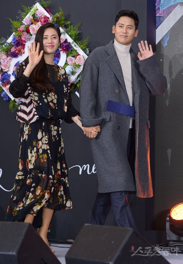 추자현-우효광 부부가 2일 서울 영등포구 타임스퀘어에서 열린 글로벌 뷰티 브랜드의 신제품 발표회에 참석하기 위해 입장하고 있다.