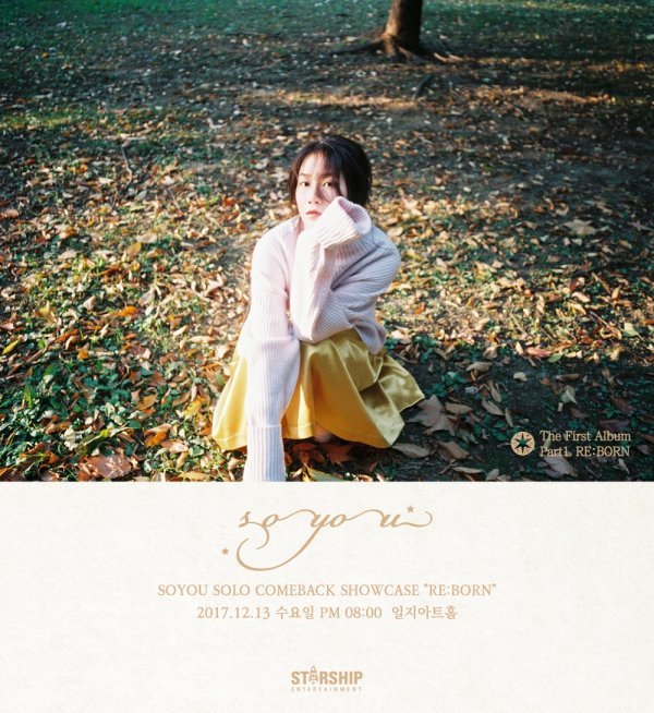 가수 소유가 오는 13일 첫 번째 정규앨범 \'SOYOU THE 1st SOLO ALBUM PART.1 RE:BORN\' 발매를 기념하여 \'소유의 작은 음악회\'를 개최한다.