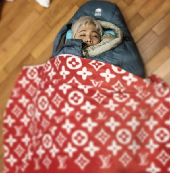 이홍기는 2일 자신의 인스타그램에 "#애벌레#휴#GMworld" 라는 글과 함께 사진 한 장을 게재했다. 사진 속 이홍기는 침낭에 들어가 숙면을 취하고 있는 모습이다.