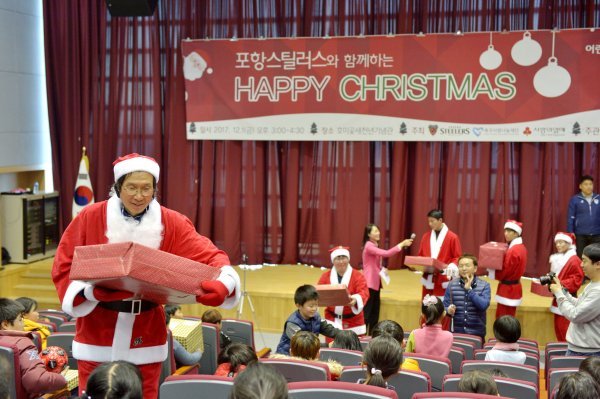 프로축구 K리그 포항스틸러스가 포항 호미곶 지역 농어촌 어린이들이 가슴 따뜻한 겨울을 맞이할 수 있도록 ‘미리’ 크리스마스 선물을 전해주었다.