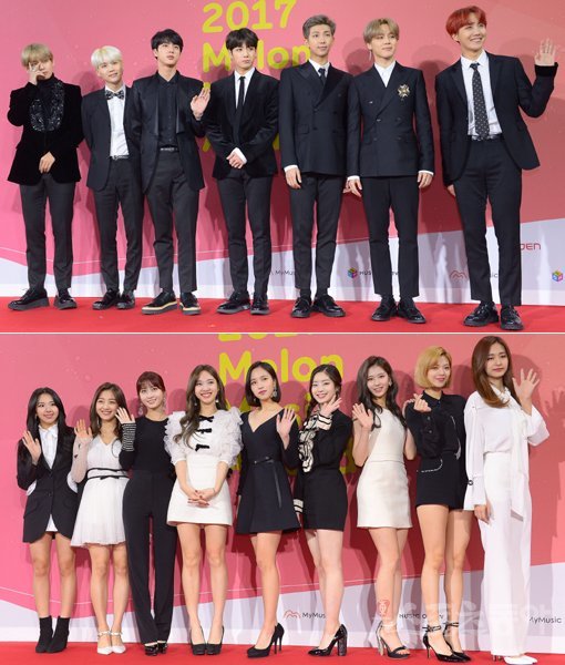 일본 TV아사히 연말 특집 음악 프로그램 ‘뮤직스테이션 슈퍼 라이브 2017’에 출연하는 그룹 방탄소년단(위쪽)-한국 가수로는 6년 만에 일본 NHK ‘홍백가합전’에 출연하는 걸그룹 트와이스. 스포츠동아DB