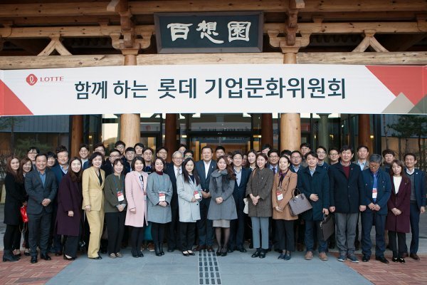 롯데 기업문화위원회는 5일 롯데 부여리조트에서 두번째 정기회의를 열고, 경영진들이 현장을 찾아 직원들과 함께했다. 기업문화위의 부여 방문은 현장 중심의 기업문화 구축을 위해 지난 8월 충주 롯데 주류 공장 방문에 이은 두번째 소통 행보로, 충청·전라 지역 소재 사업장에서 근무하는 호텔, 케미칼, 제과, 백화점, 글로벌로지스 등 13개 계열사 직원 40명과 5시간 동안 간담회를 진행했다.
