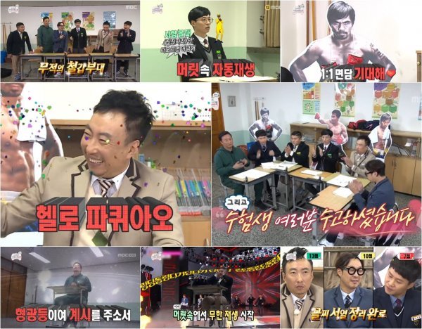 지난 9일 방송된 MBC 리얼버라이어티쇼 ‘무한도전’(기획 김태호 / 연출 김선영, 정다히 / 작가 이언주) 548회는 멤버들이 복싱 전설 파퀴아오와 1:1 스파링 면담을 걸고 수능시험을 치르는 모습이 펼쳐졌다.