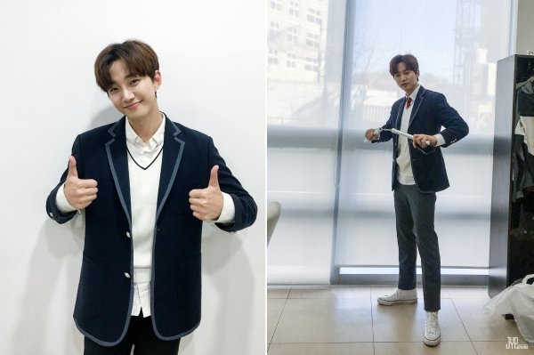 10일 JYP엔터테인먼트 측은 공개한 사진에는 교복을 입고 촬영을 하고 있는 이준호의 모습이 담겨있다.